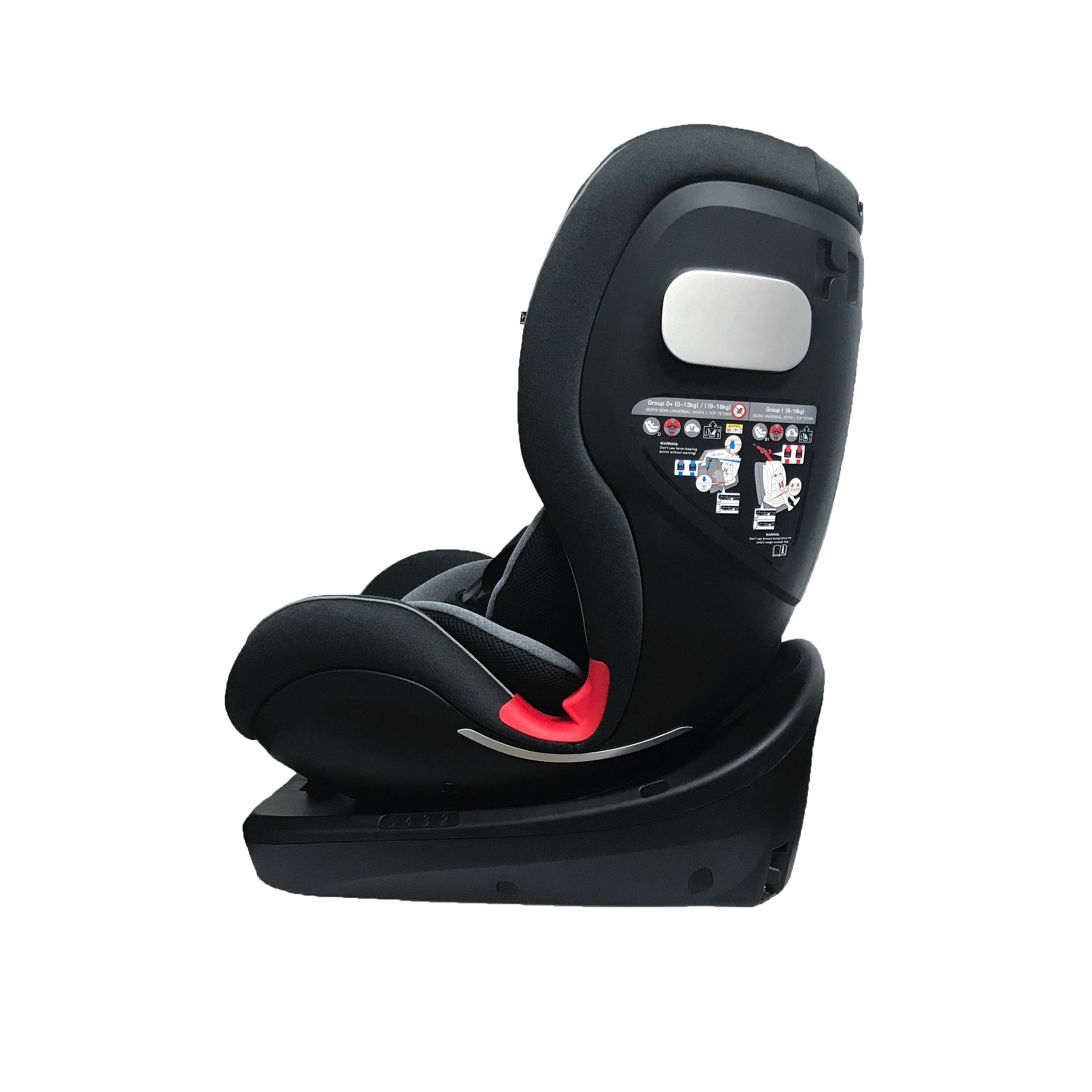 - Face the car seat to the door for easy buckling of child, before rotating to front or rear facing position