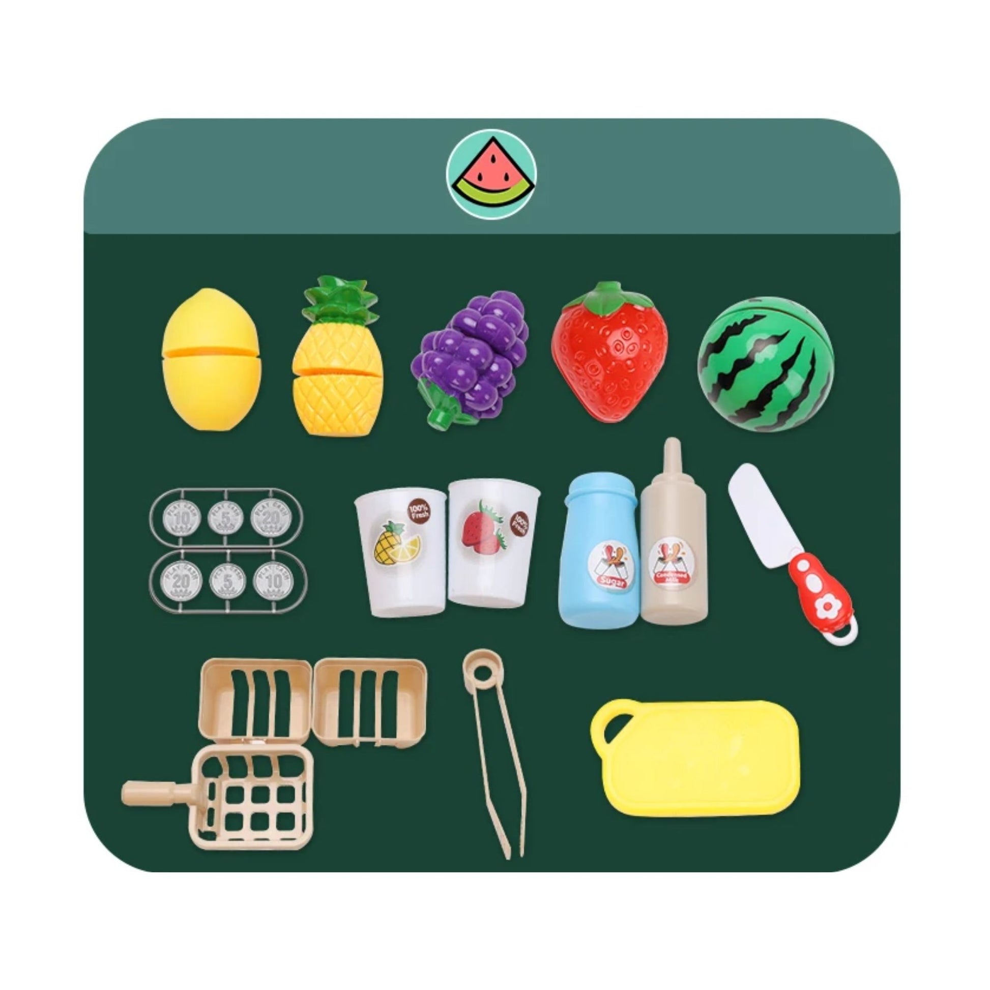 Then you will love the Maya & Friends Playhouse Counter Series! This is a fun and colorful toy counter that lets your little one pretend to run his or her own burger shop or fruit juice shop.