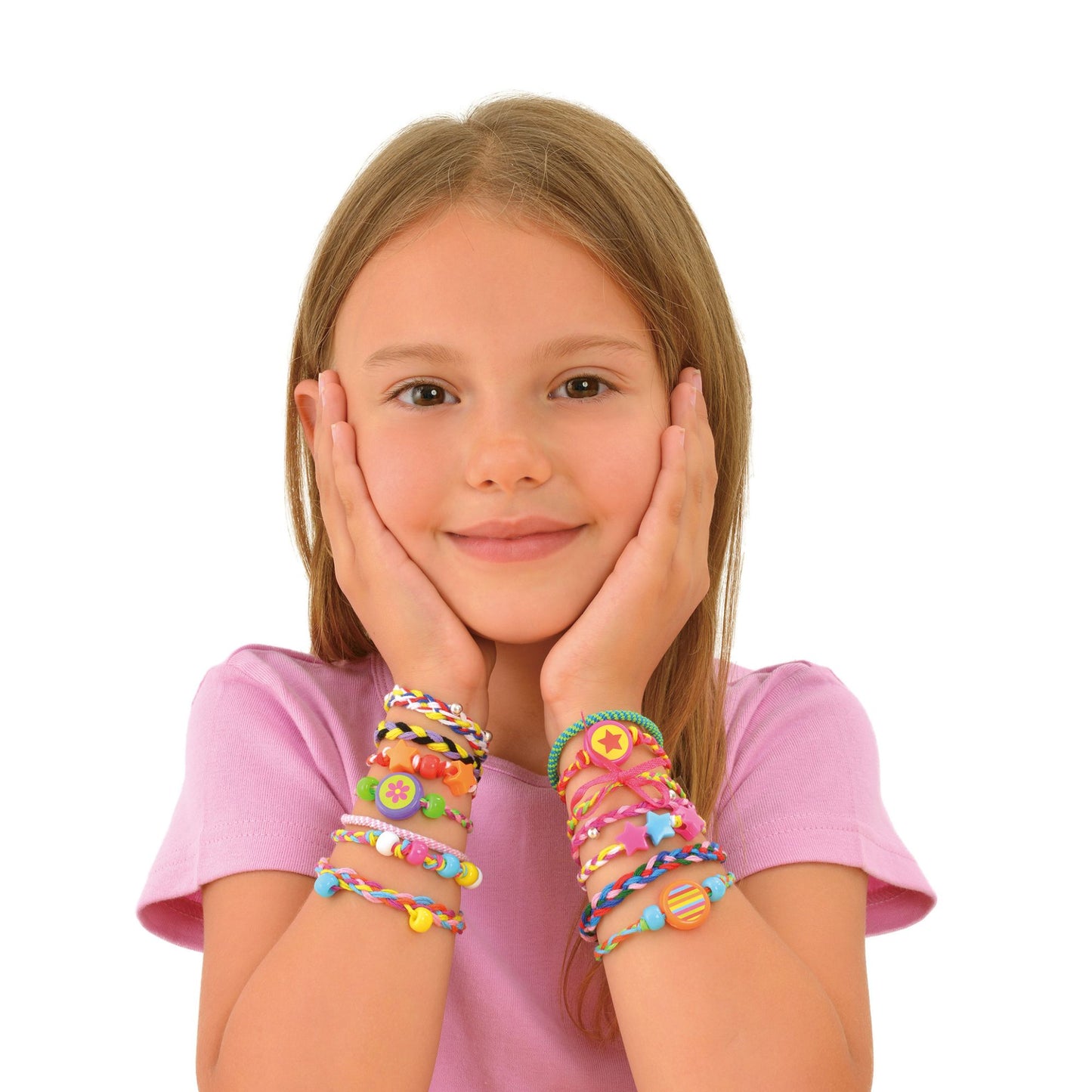 Create plaited and woven friendship bracelets with colourful threads, beads and ribbon. Make cool cord bracelets with the foam braiding wheel.