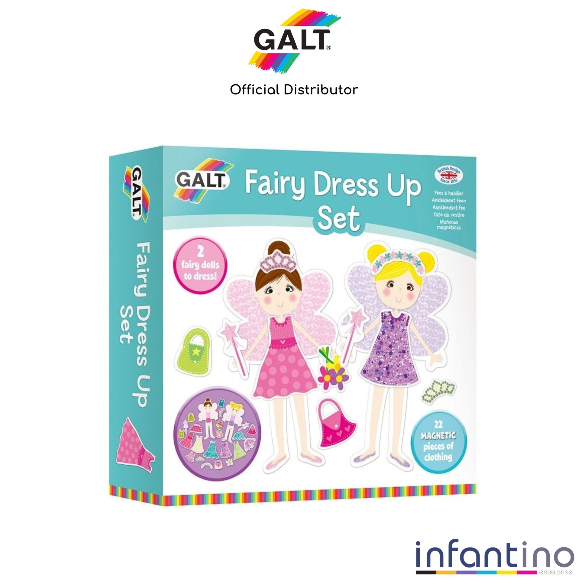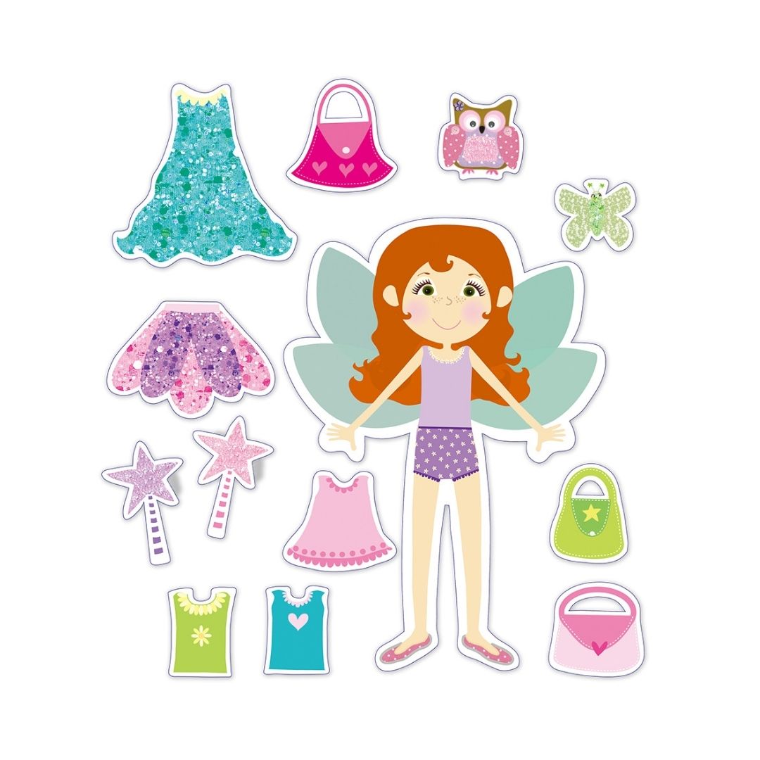 Design fun fairy outfits with this magnetic dressing up kit. Place the clothes, tiaras and magic wands on the fairies and the magnetic surfaces keep them in place. A fun and creative activity! Contents: 2 magnetic fairy dolls, 22 magnetic items of clothing and accessories.