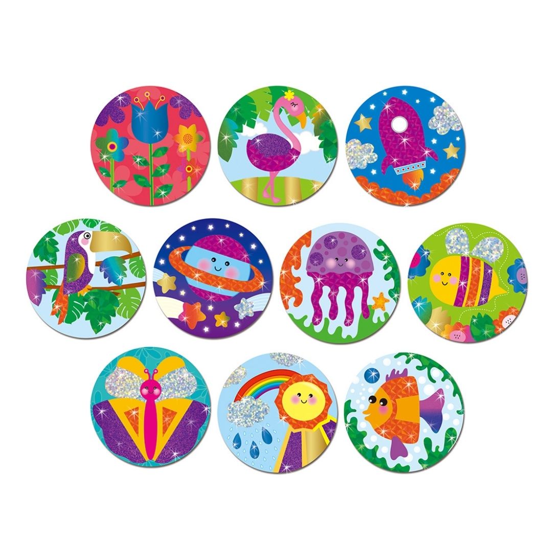Make 10 shiny badges with fancy foil sheets. Add your chosen foil onto the adhesive sections of the sticker, stick your foil creation onto a badge backing then add a badge pin to complete a super sparkly badge!