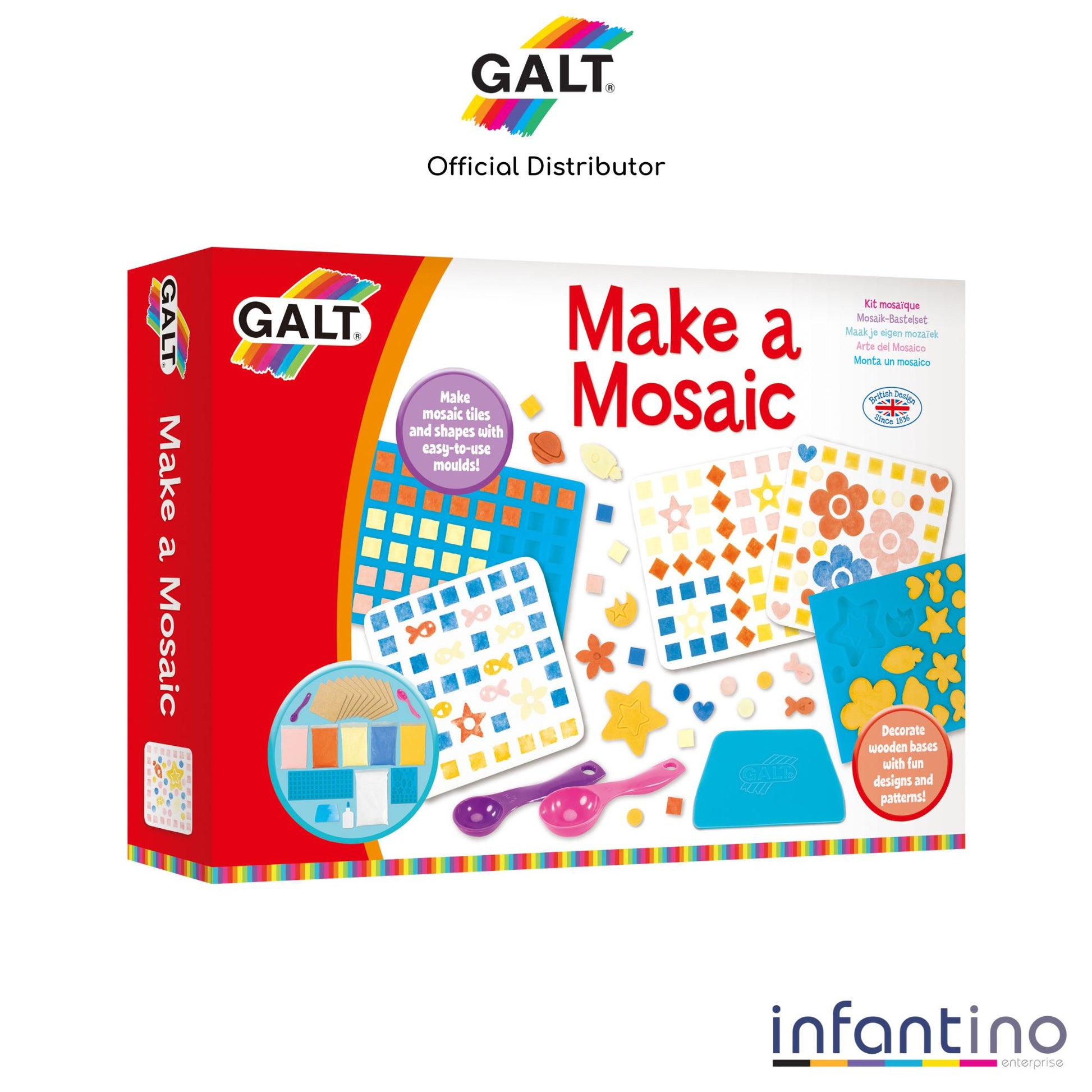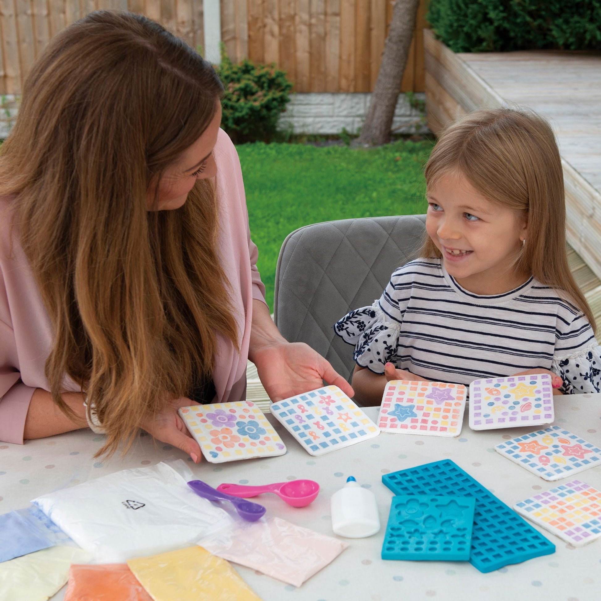 Make colourful mosaic tiles and shapes using the plaster and moulds. Decorate the 9 wooden bases with the mosaic tiles and shapes. With 6 colours of plaster, children can design and make their own unique creations.