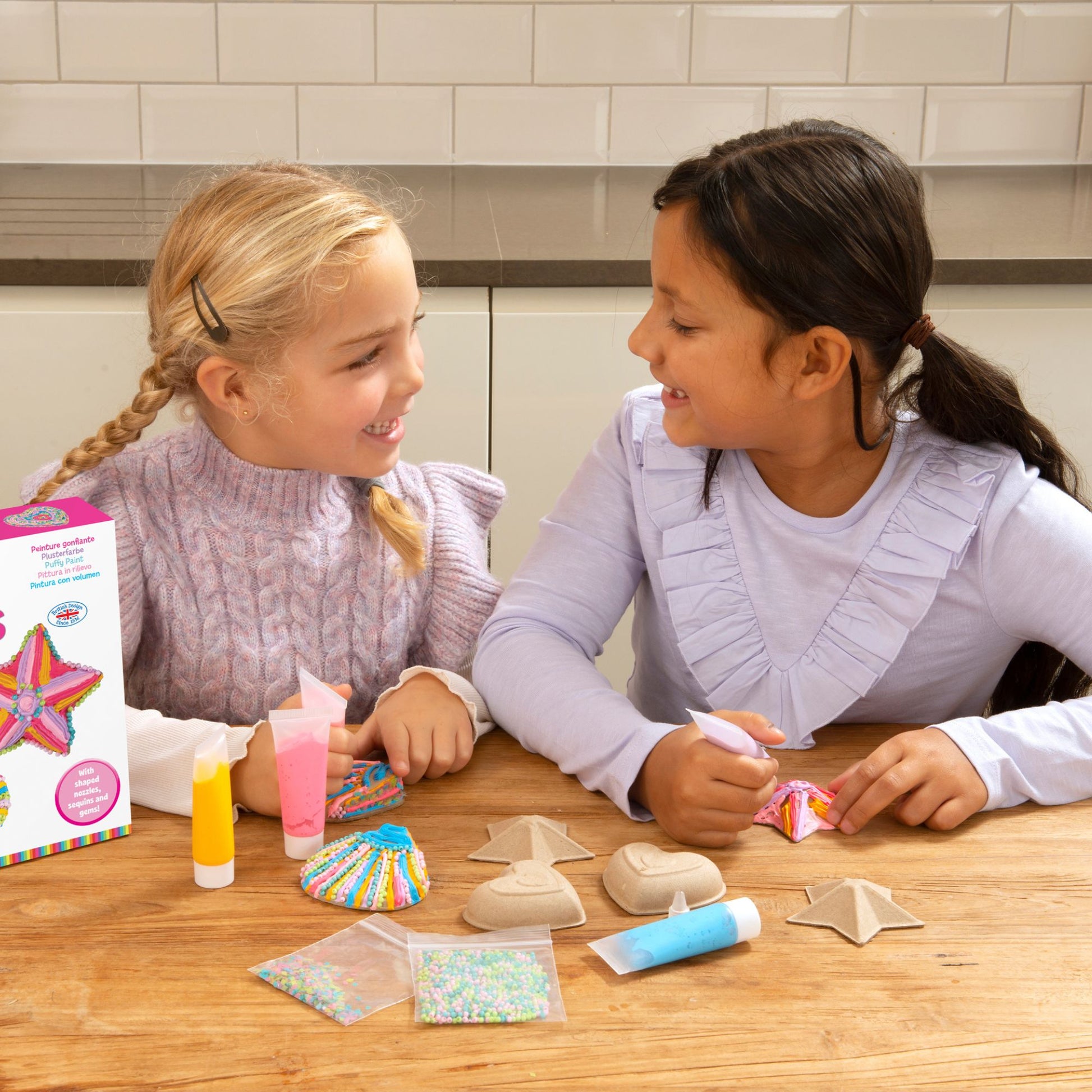 This set lets kids create three fabulous boxes by piping puffy paint onto the three paper moulds provided. There’s a heart-shaped box, a star shape and one that’s topped with a seashell.