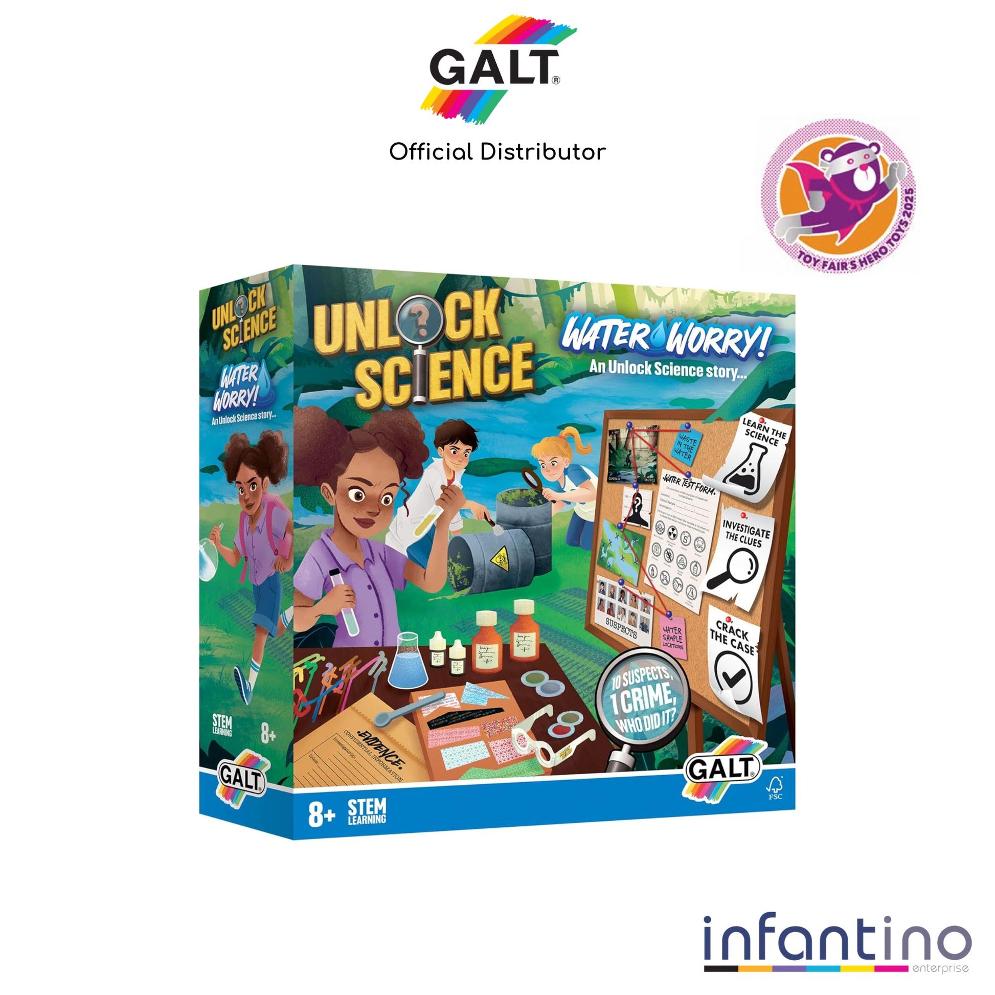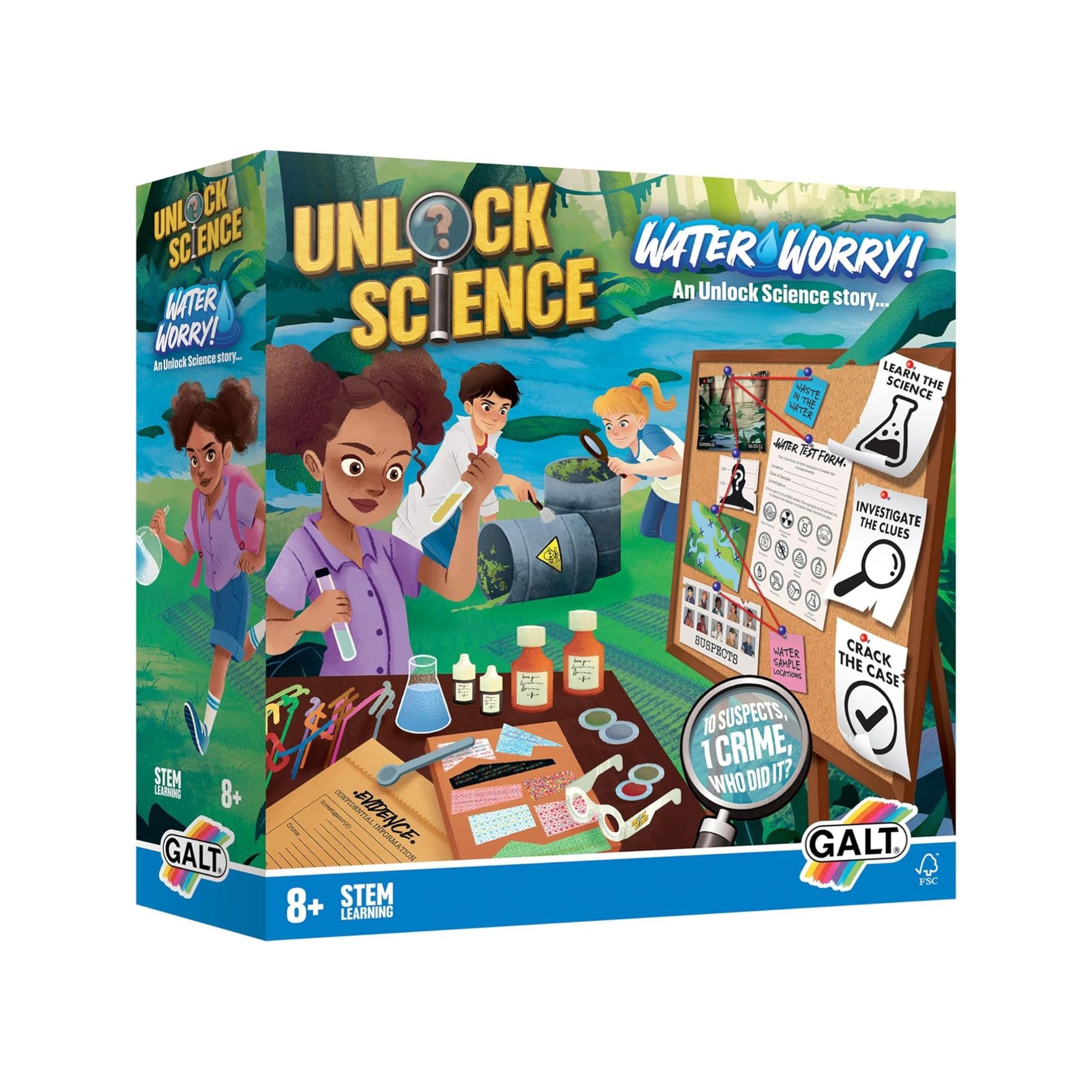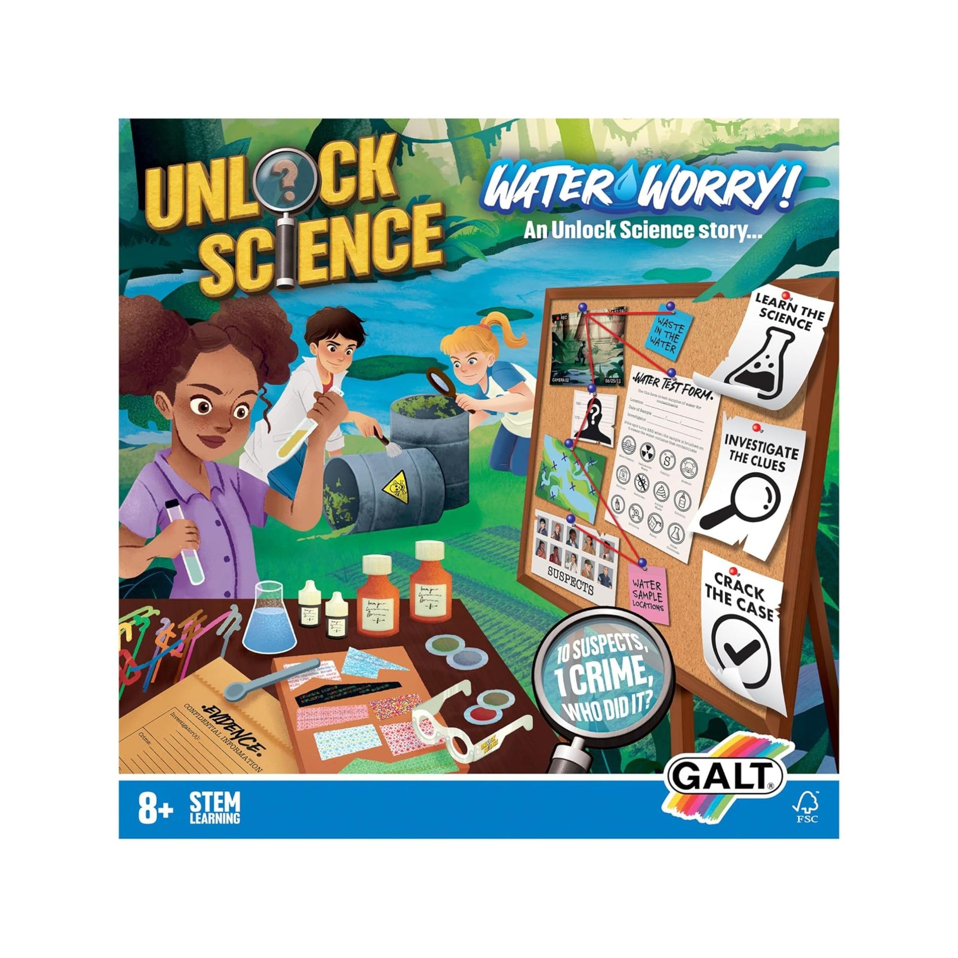 - Crack the case: With the unique science kit, analyse suspects, decipher puzzles and eliminate culprits using scientific experiments; you can identify the perpetrator and save the river from harmful waste.