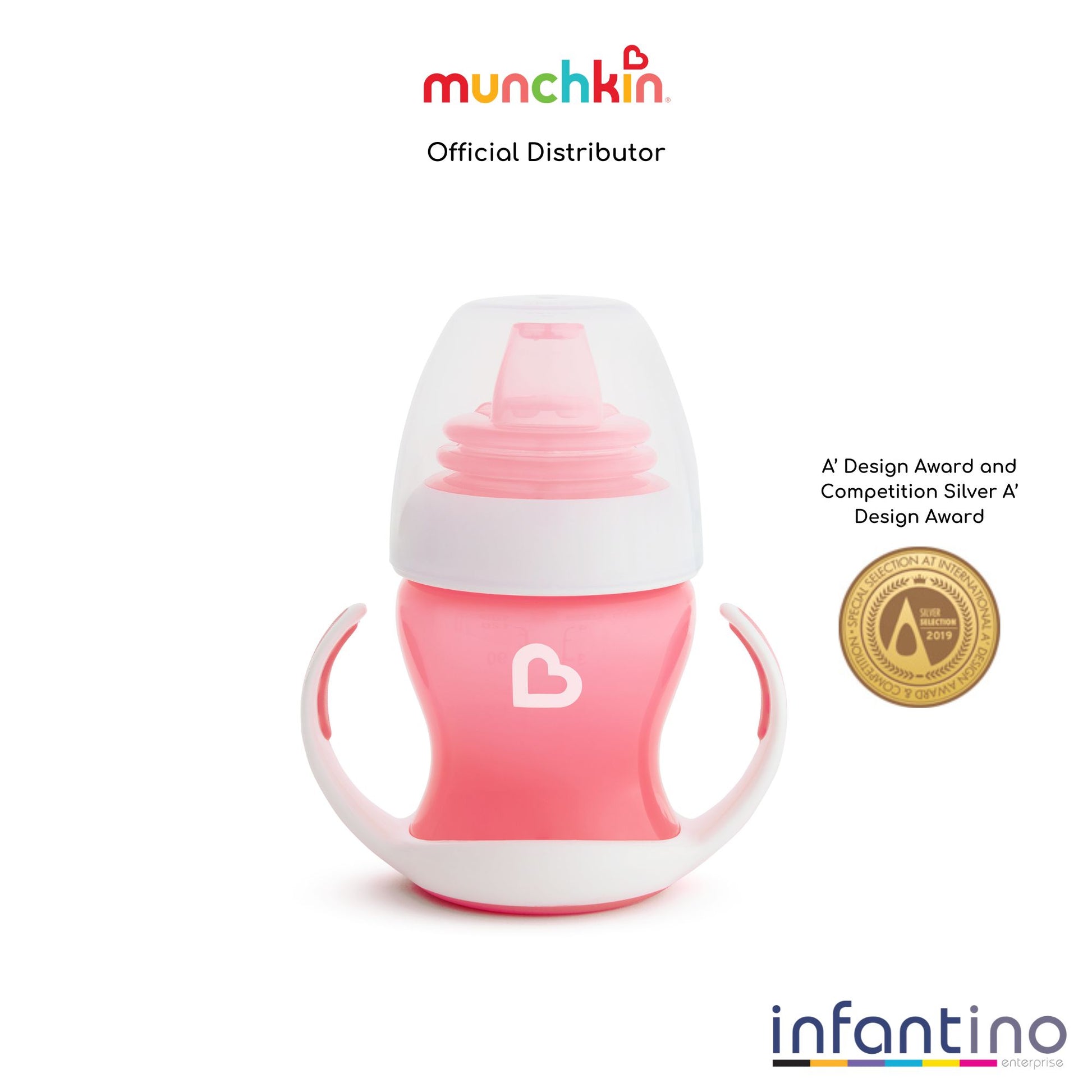 Moving to a sippy cup is an exciting first step toward drinking independence, but it can be confusing for bottle-fed babies. Make the change easier with the spill-proof Gentle™ Transition cup! The soft, patented spout design is extremely flexible and gentle on babies' sensitive gums, and the removable handles make it easy for them to take the lead. When it's time to leave the bottle behind, this spill-proof trainer is the perfect first sippy cup to introduce. Cheers to hitting those milestones!