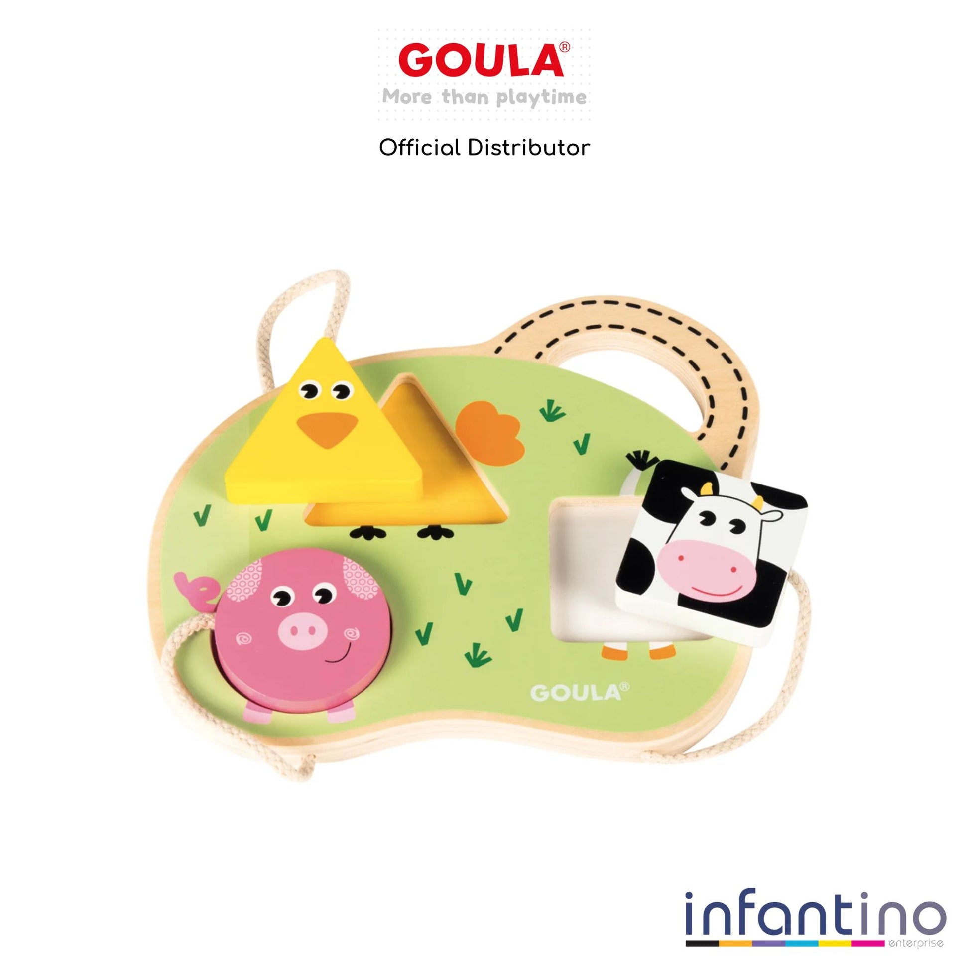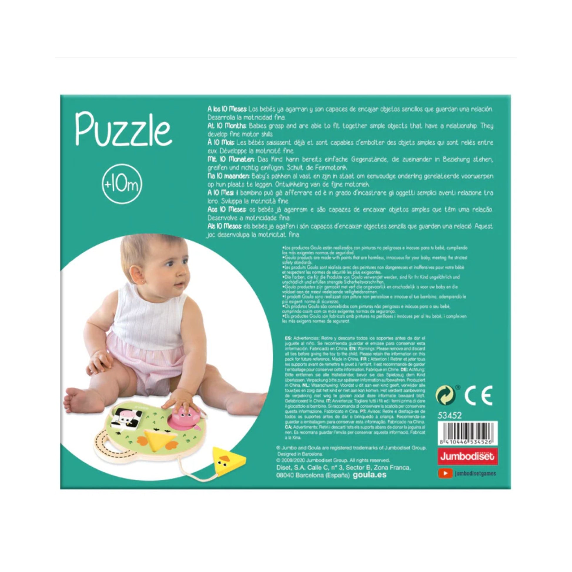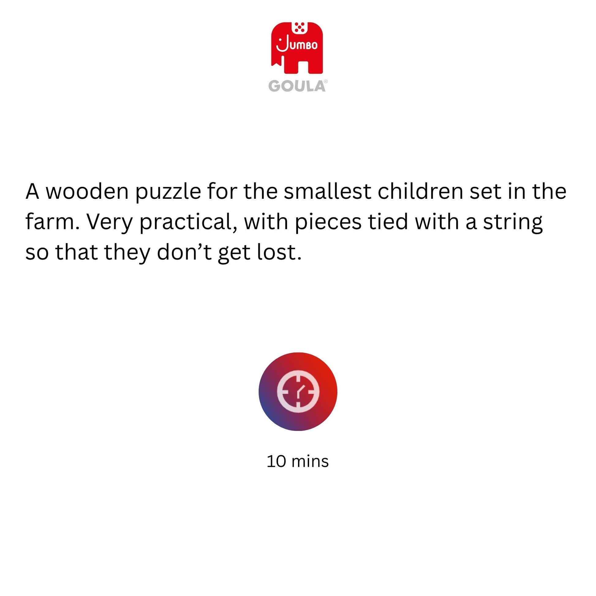 A wooden puzzle for the smallest children set in the farm. Very practical, with pieces tied with a string so that they don’t get lost.