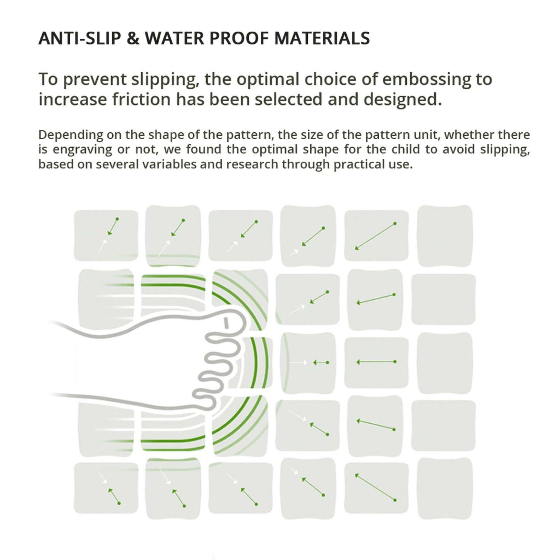 To prevent slipping , the optimal choice of embossing to increase friction has been selected and designed.