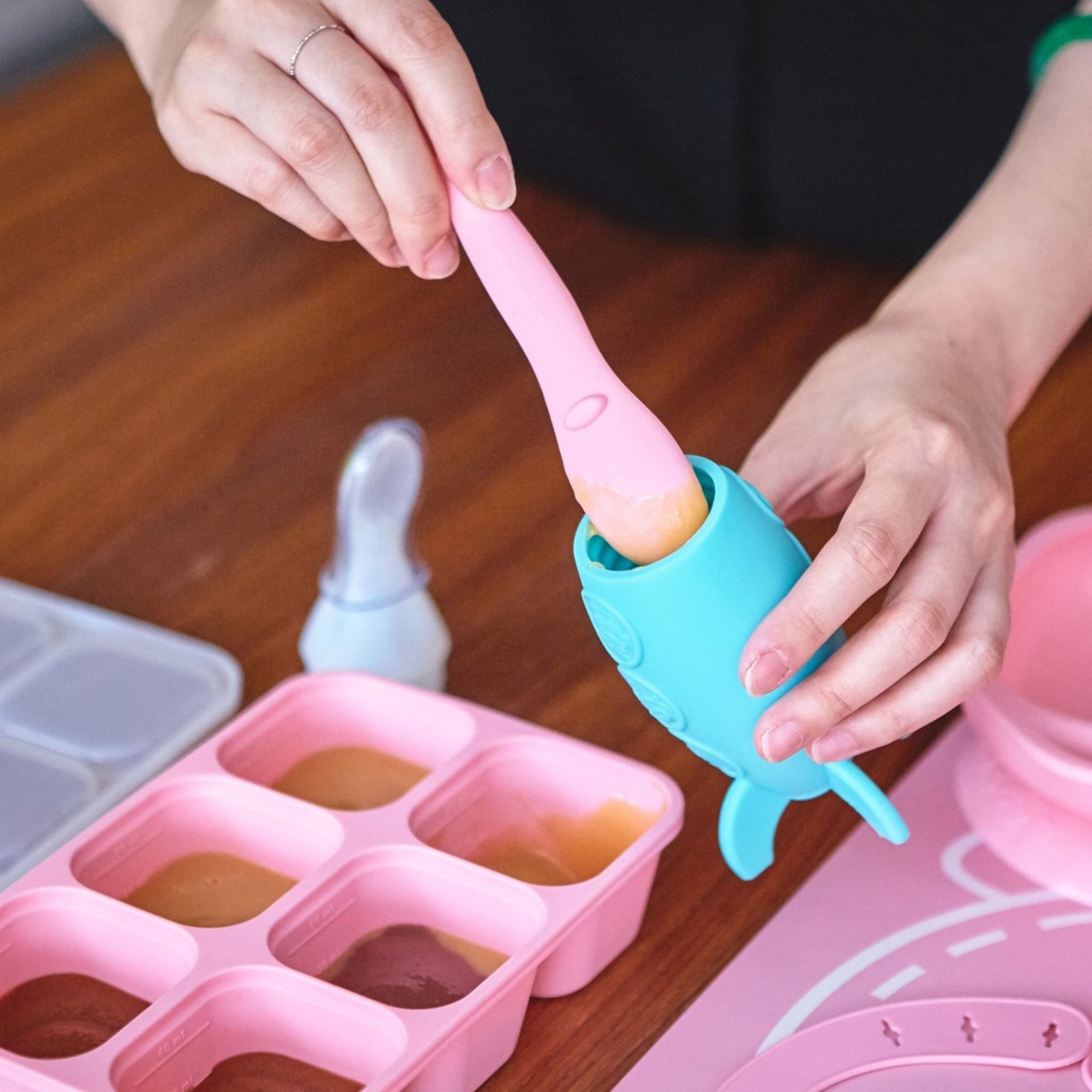 Feeding a baby is not always an easy task. That’s why Marcus & Marcus Feeding Spoon Dispenser is designed to help mealtimes easier. It removes the jar and the mess and packs a whole meal into one single one-handed utensil. The rocket design attracts your little one’s attention while the spoon dispenses food one bite at a time with a squeeze. The stand-up base keeps the spoon off the table, so the spoon and the table stays clean. The included cap can be used to seal in food when your family is on-the-go.