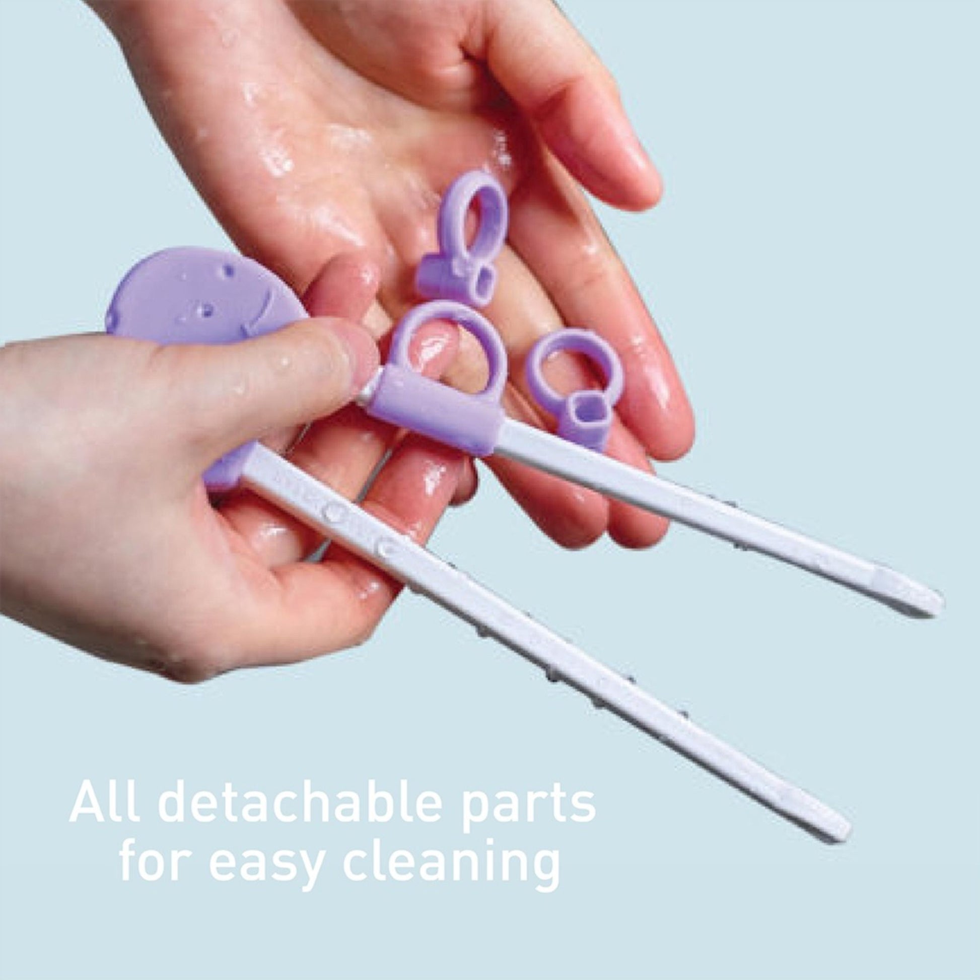 Marcus & Marcus learning chopsticks is one design that fits both right-handed and left-handed toddlers. They are so easy to use and toddlers can learn using the chopsticks in a day! The rings support them to hold onto the chopsticks and they can be adjusted to a comfortable angle for perfect fitting on each individual hand. The wider tips of the chopsticks are also for easier food pick up. All parts of the chopsticks are detachable for easy cleaning. Marcus & Marcus learning chopsticks are made of BPA, Phthalate and Melamine free materials.