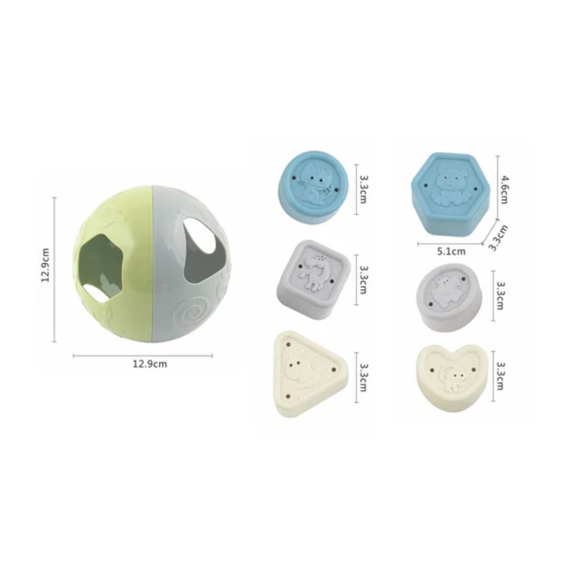 - 1 ball with 7 animal sorter pieces