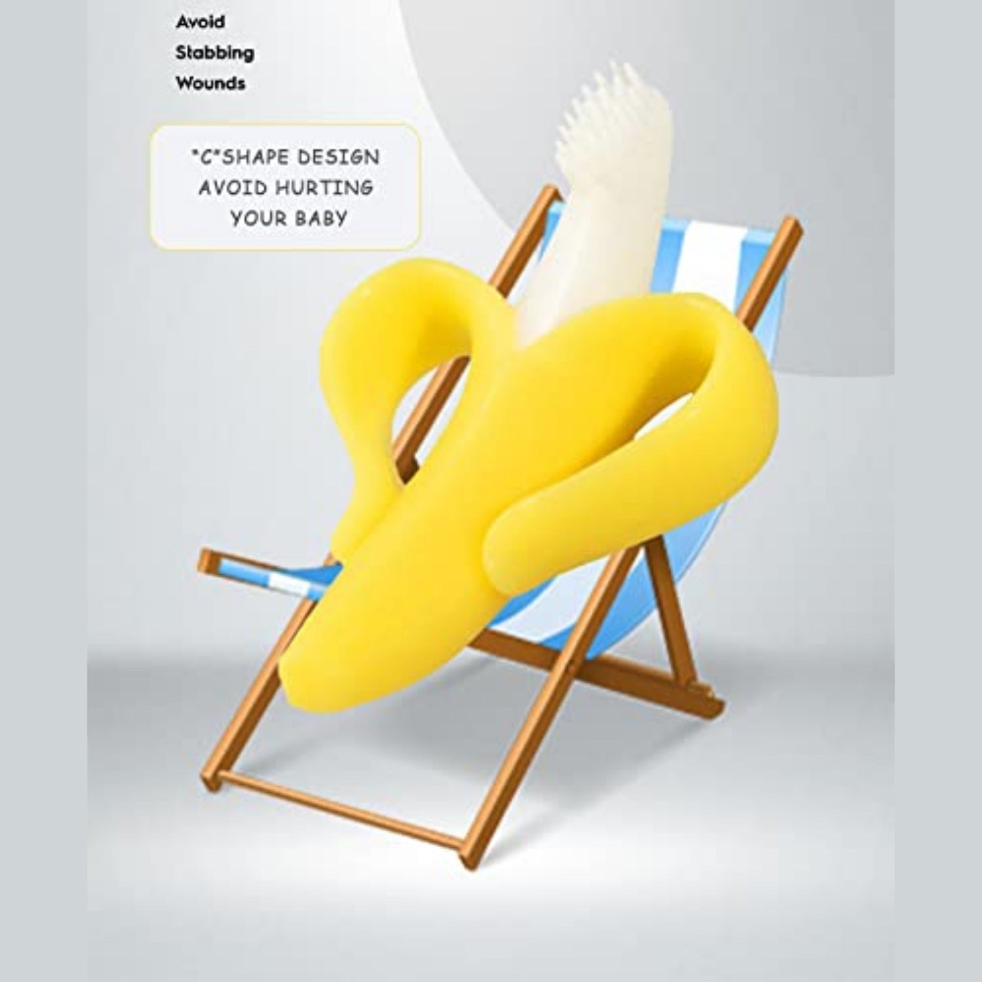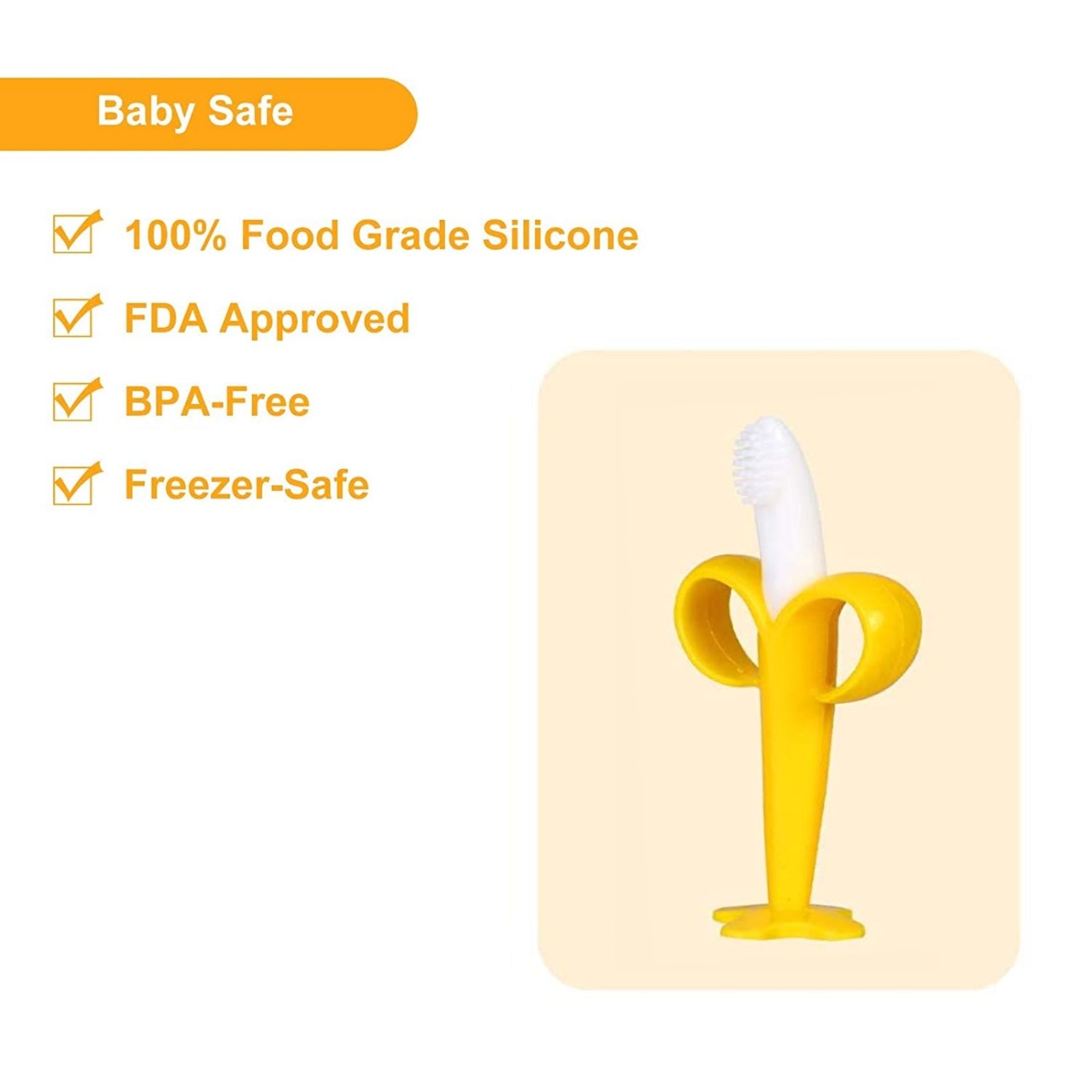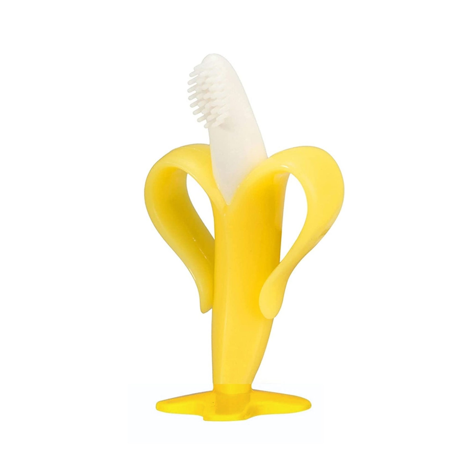 The Banana Teether Toothbrush helps your baby grow their teeth happily and healthily by helping soothe sore teething gums while promoting oral hygiene .Our teething toys for babies 3 to 18 months helps relieve teething discomfort, whilst also preventing any cavities – paving the way to a beautiful smile for your baby.