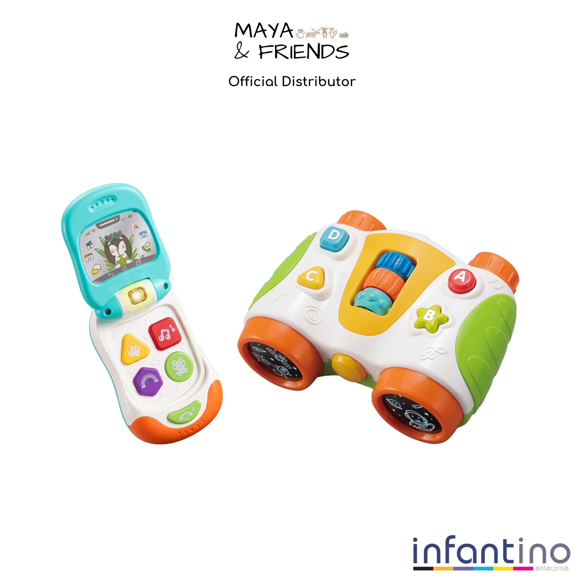 Introducing the Maya & Friends Flip Phone and Binoculars Musical Toy Set, the perfect playtime companion for toddlers aged 18 months and up!