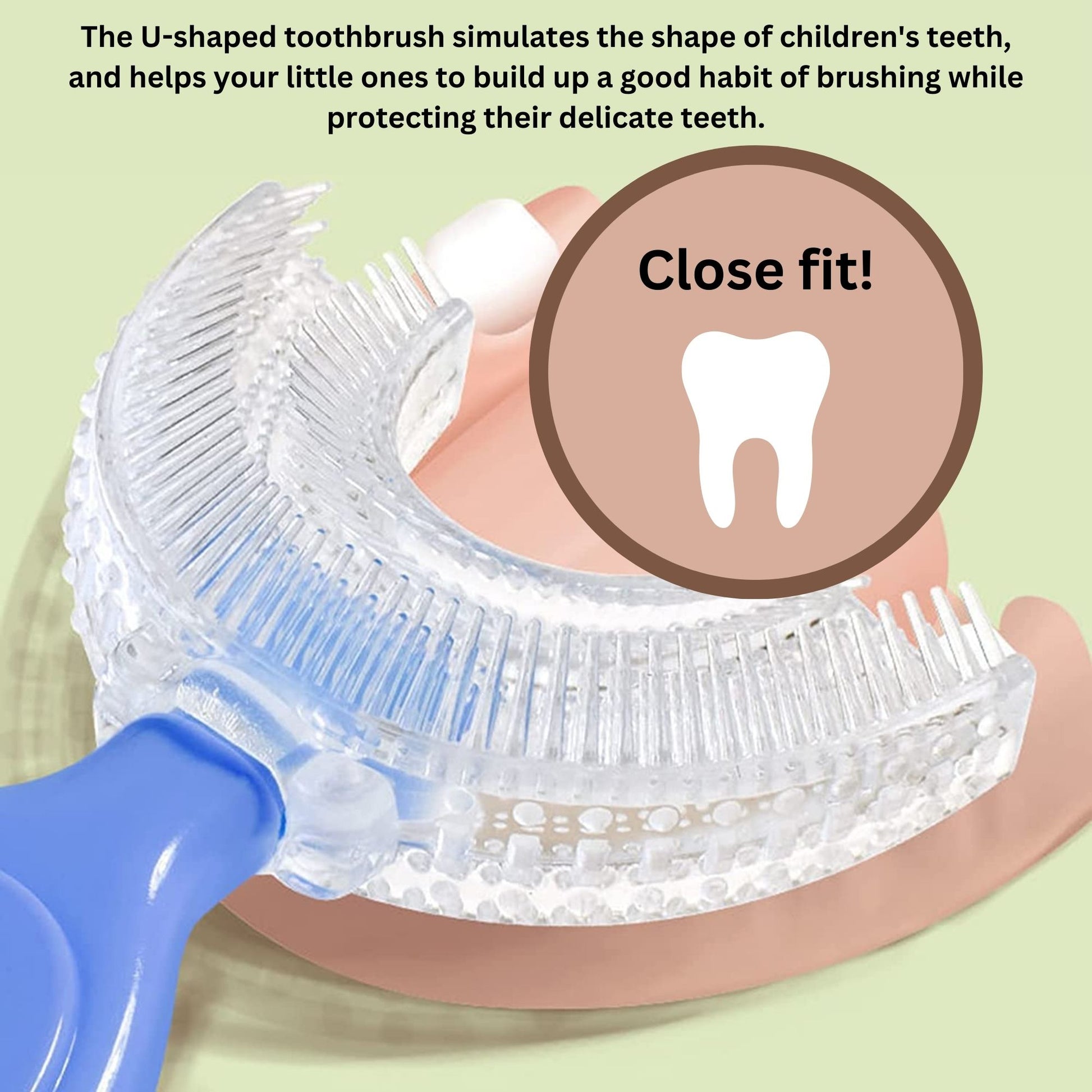 Set: The product includes a U-shaped toothbrush and a ultra soft bristle toothbrush, which can face the dental care of children aged 2-12.