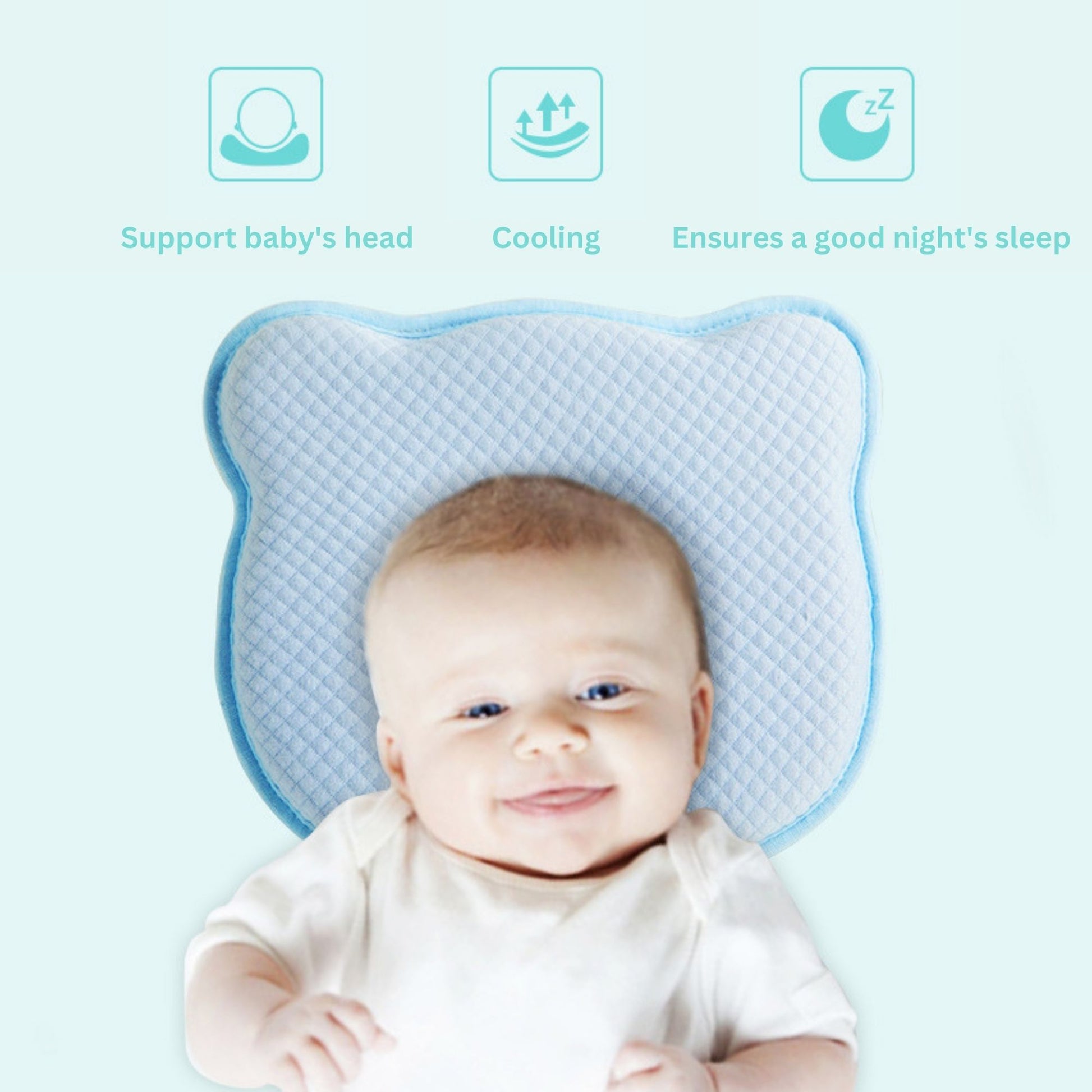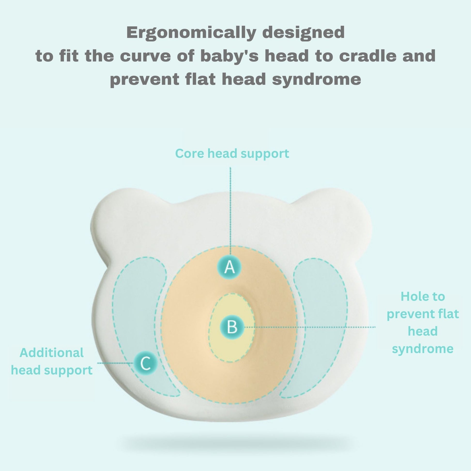 A newborn's skull that is not developed fully can deform if they spend hours sleeping on their backs. With this memory foam pillow, it helps to support babies' natural head growth an maintain the shape of their head. Promoting healthy head growth, extra comfort and pressure relief on your babies' head.