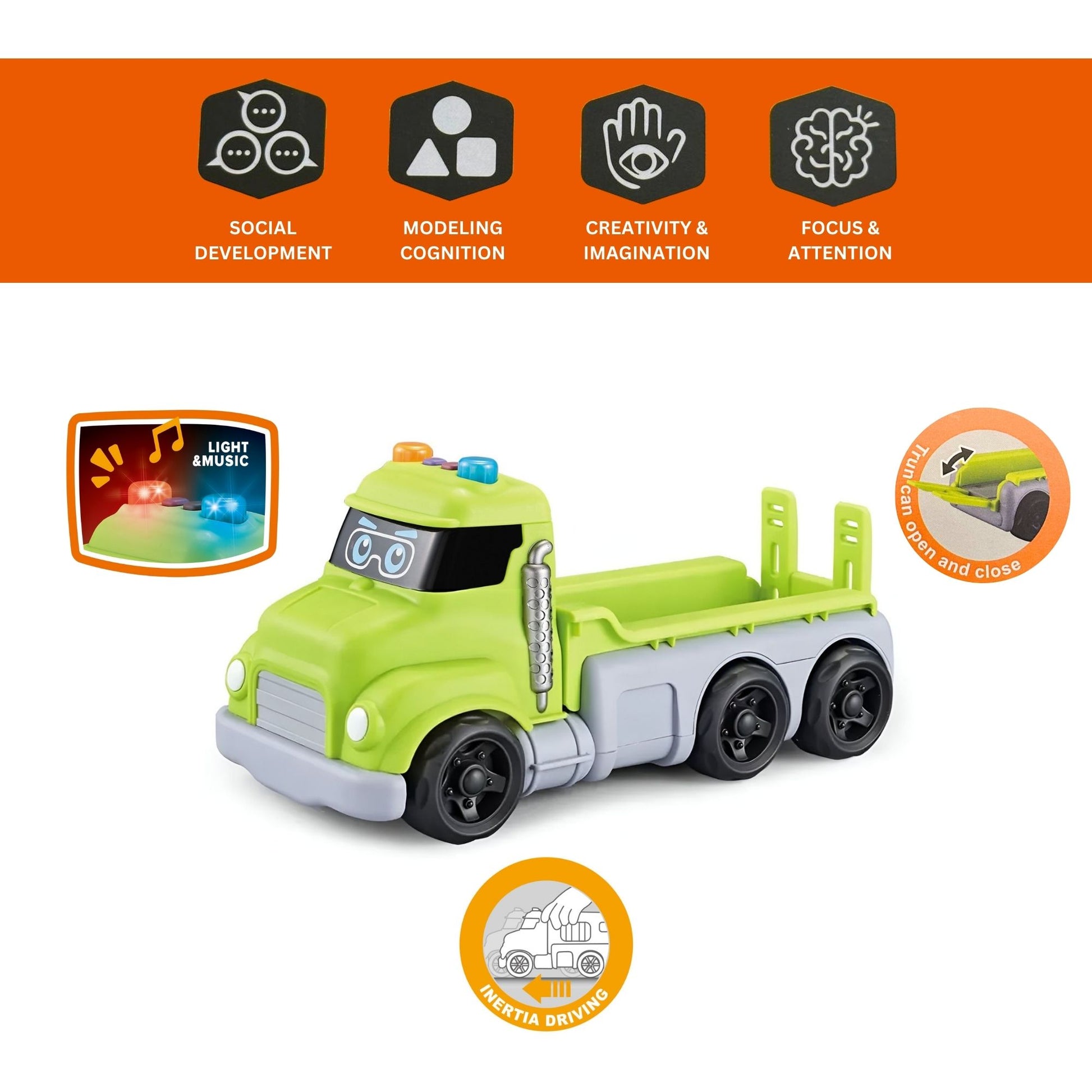 Meet Rusty! The hardworking Construction Truck, a vibrant playtime companion suitable for children aged 18 months and up. This charming construction truck comes alive with engaging lights and music features that will captivate your little one's imagination.
