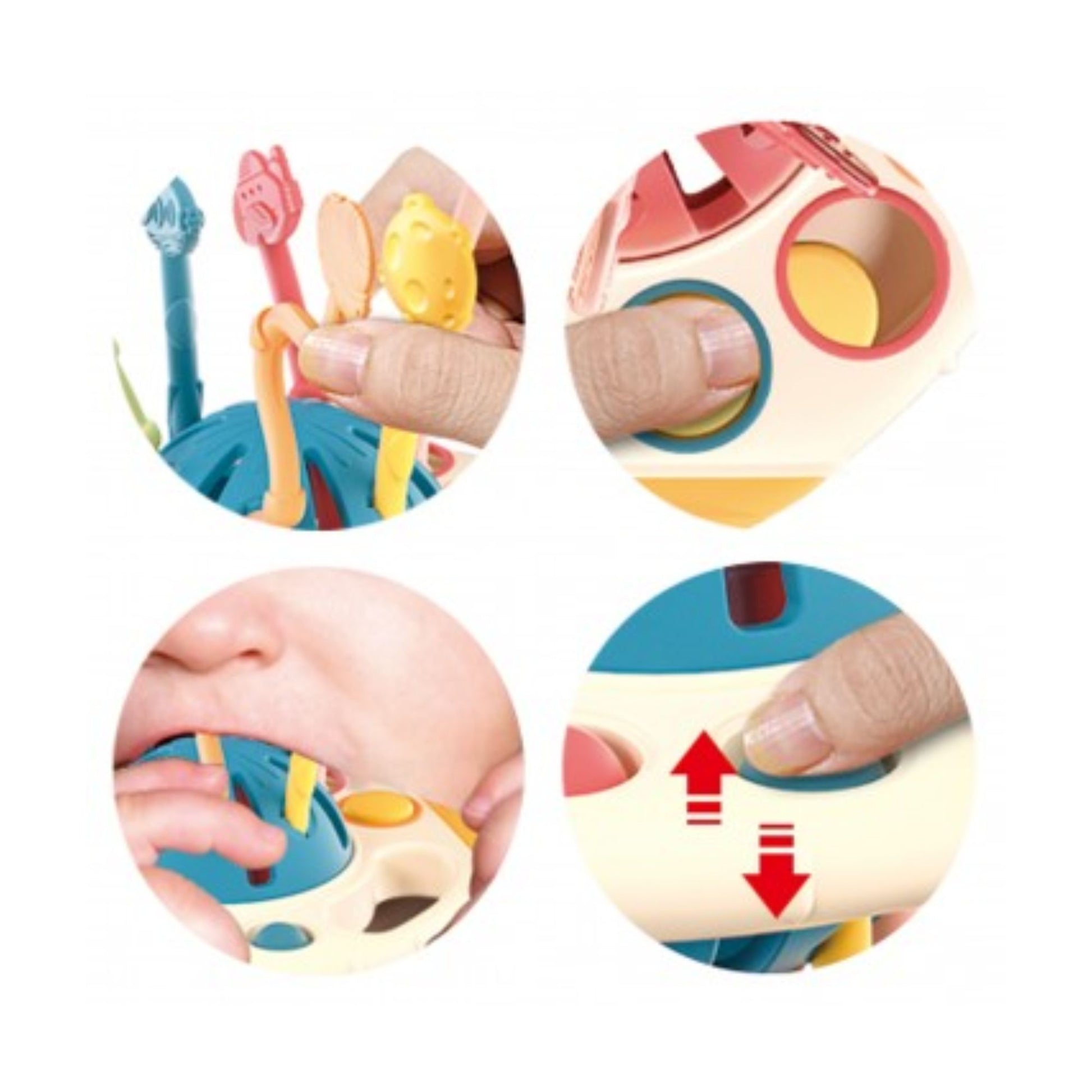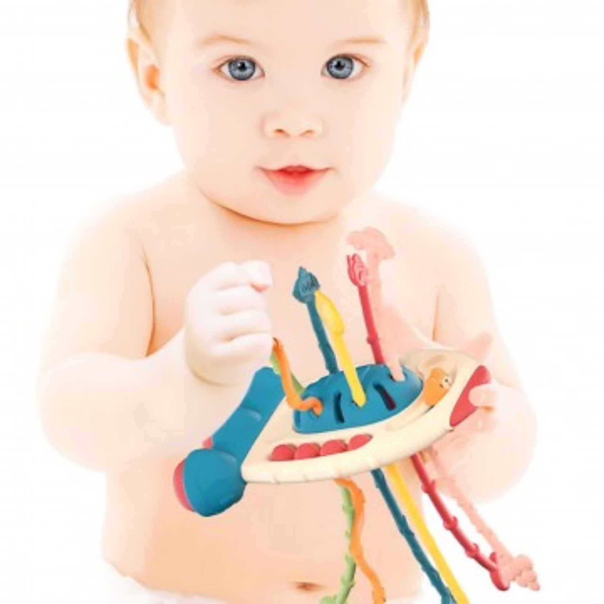 Textured cords and easy to hold grips promote motor skills, sensory exploration, fine motor skills and hand-eye coordination.