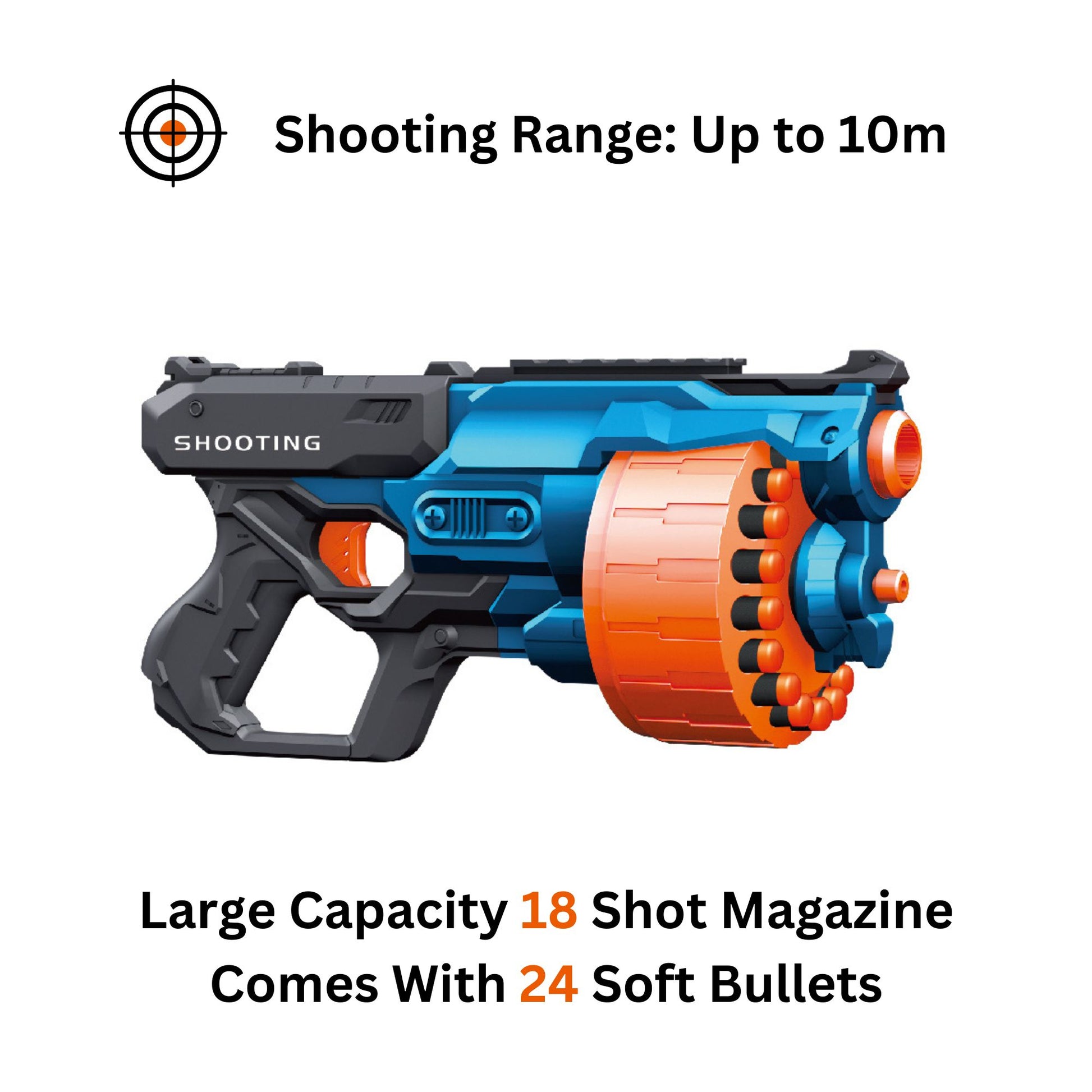 This toy blaster gun is designed to be safe and easy to use, with soft bullets that won't hurt anyone and a 18 bullet capacity magazine that lets you fire away without reloading. Plus, it has a shooting range of 10m, so you can hit your targets from a distance. The Maya & Friends Soft Foam Bullet Toy Blaster Gun is perfect for indoor and outdoor play, whether you want to have a friendly battle with your buddies or practice your aim and accuracy.