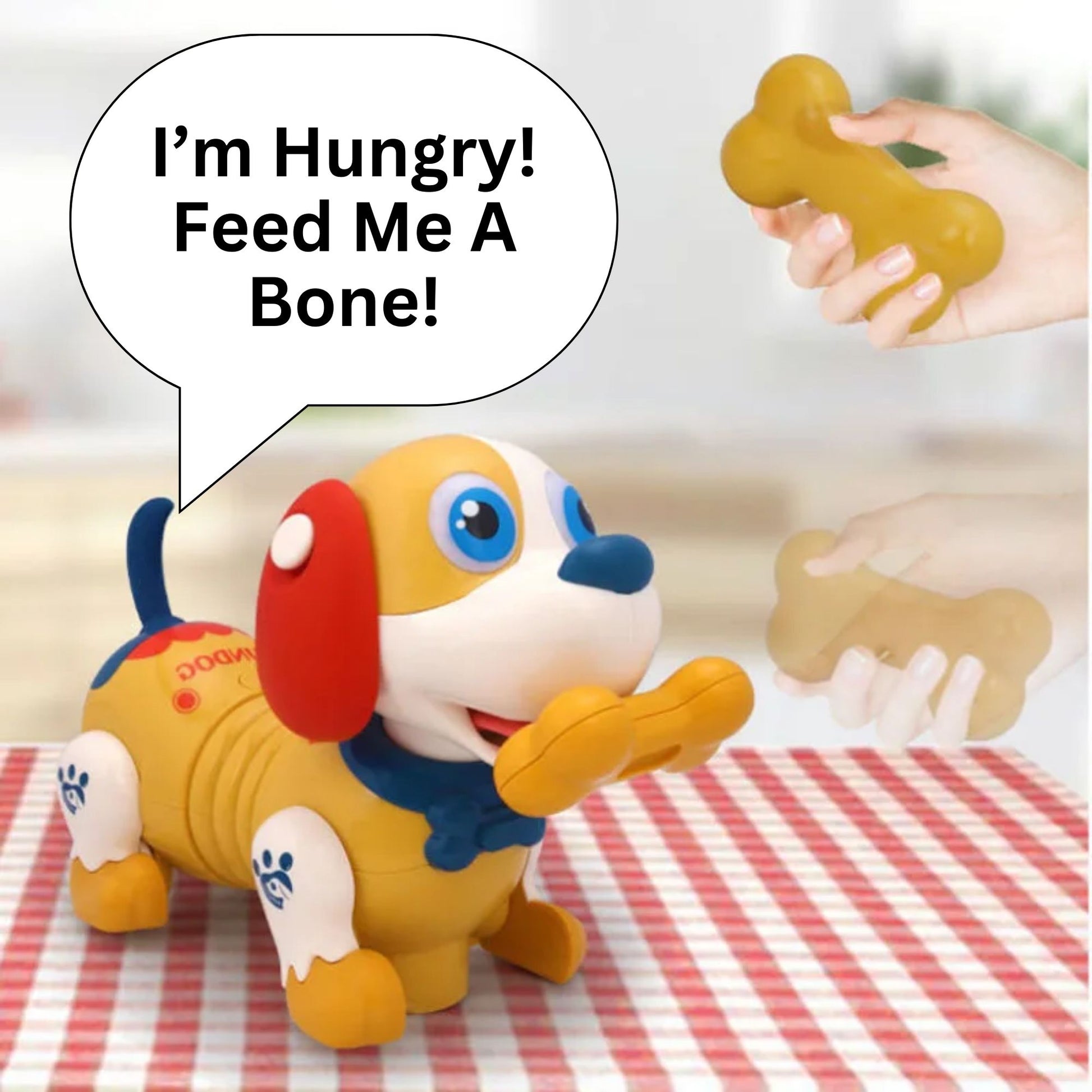 Watch its cute tongue swing up and down when you play with it, or make it wag its tail as you rub its belly. The puppy can also play music, sing and dance with you, and even comes with a toy bone that you can feed her with.