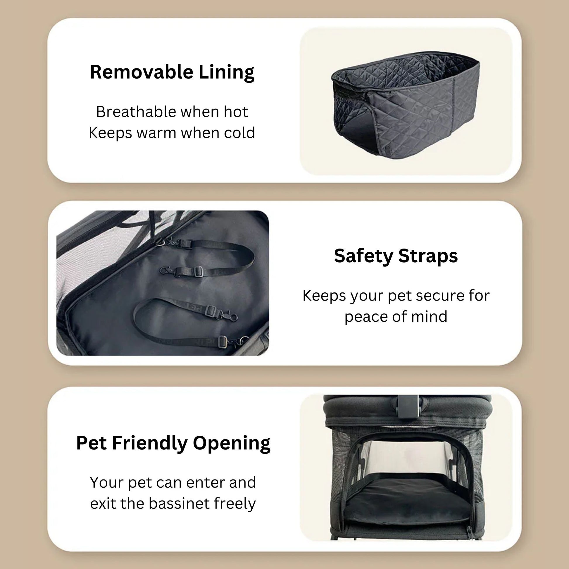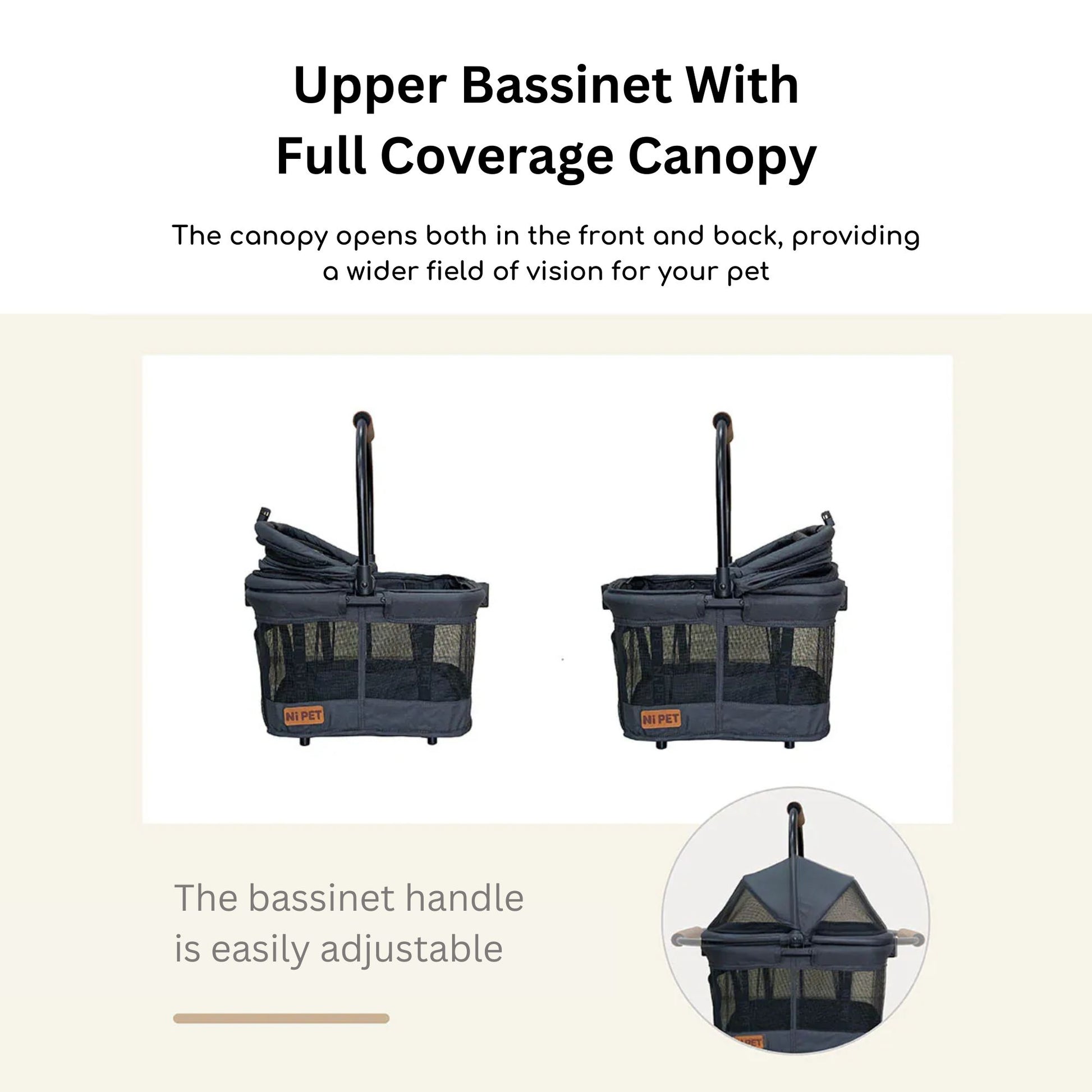 The walls of the bassinet are equipped with mesh openings to provide breathability and visibilty